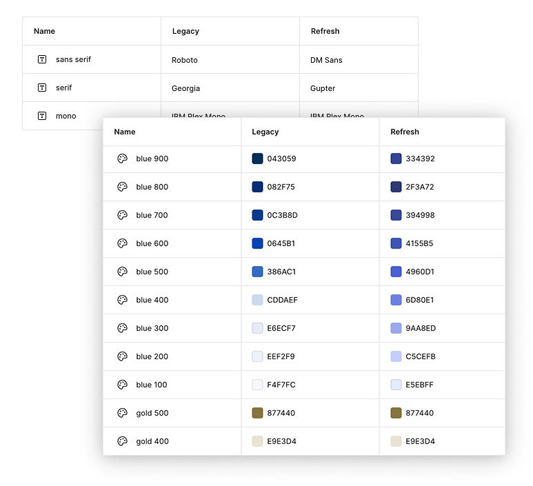 We maintained parallel collections representing both the legacy and refreshed design variables. This allowed designers to design features in either (or both) styles with zero extra work.